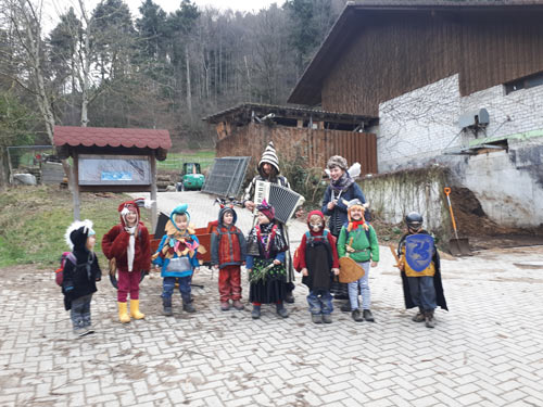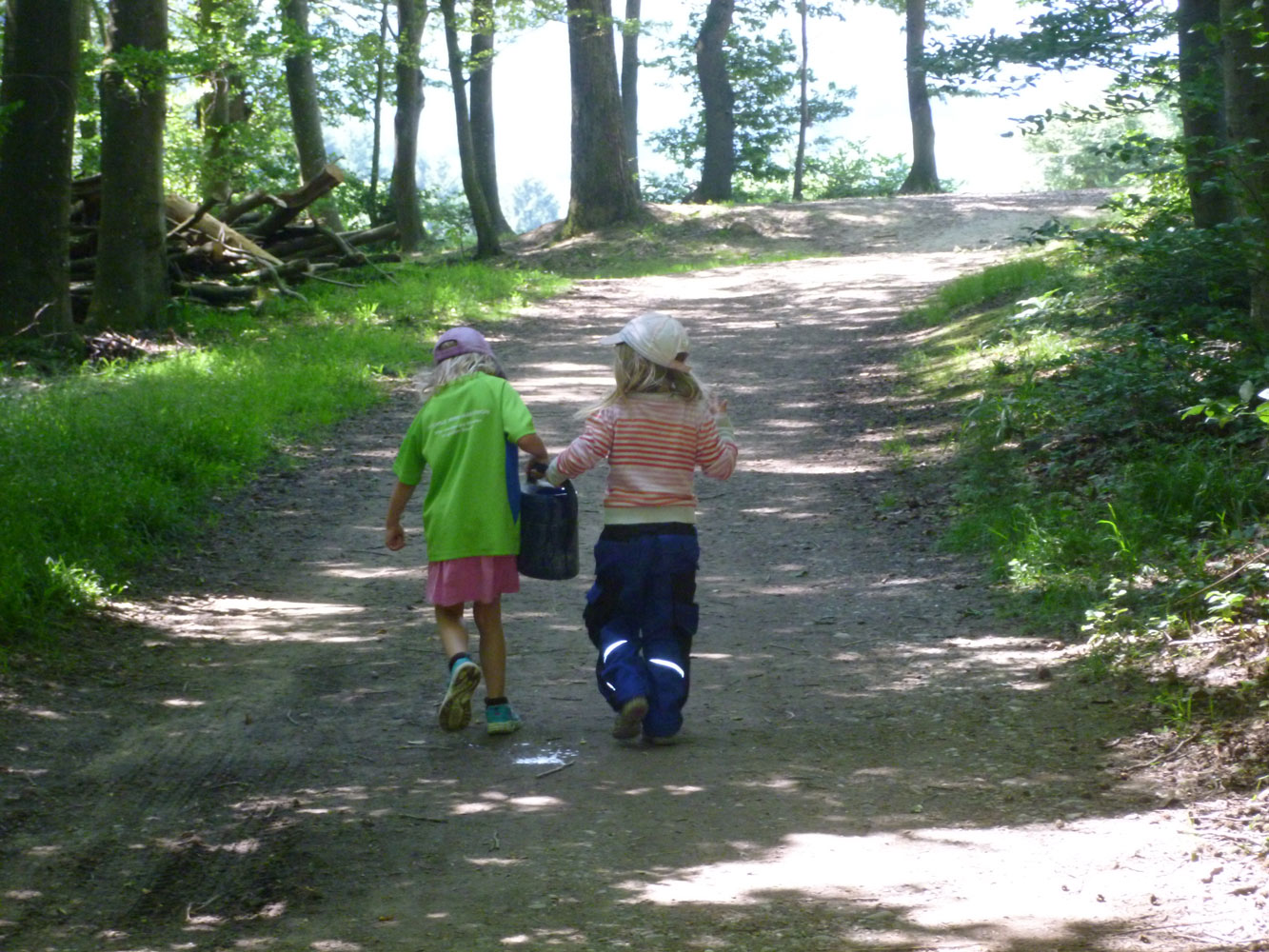 • Eintreffen der Kinder am vereinbarten Ort. Danach gehen wir gemeinsam zu unserem Wagen am Waldrand. Die Kinder laufen in ihrem eigenen Tempo – es gibt schon so viel zu entdecken!