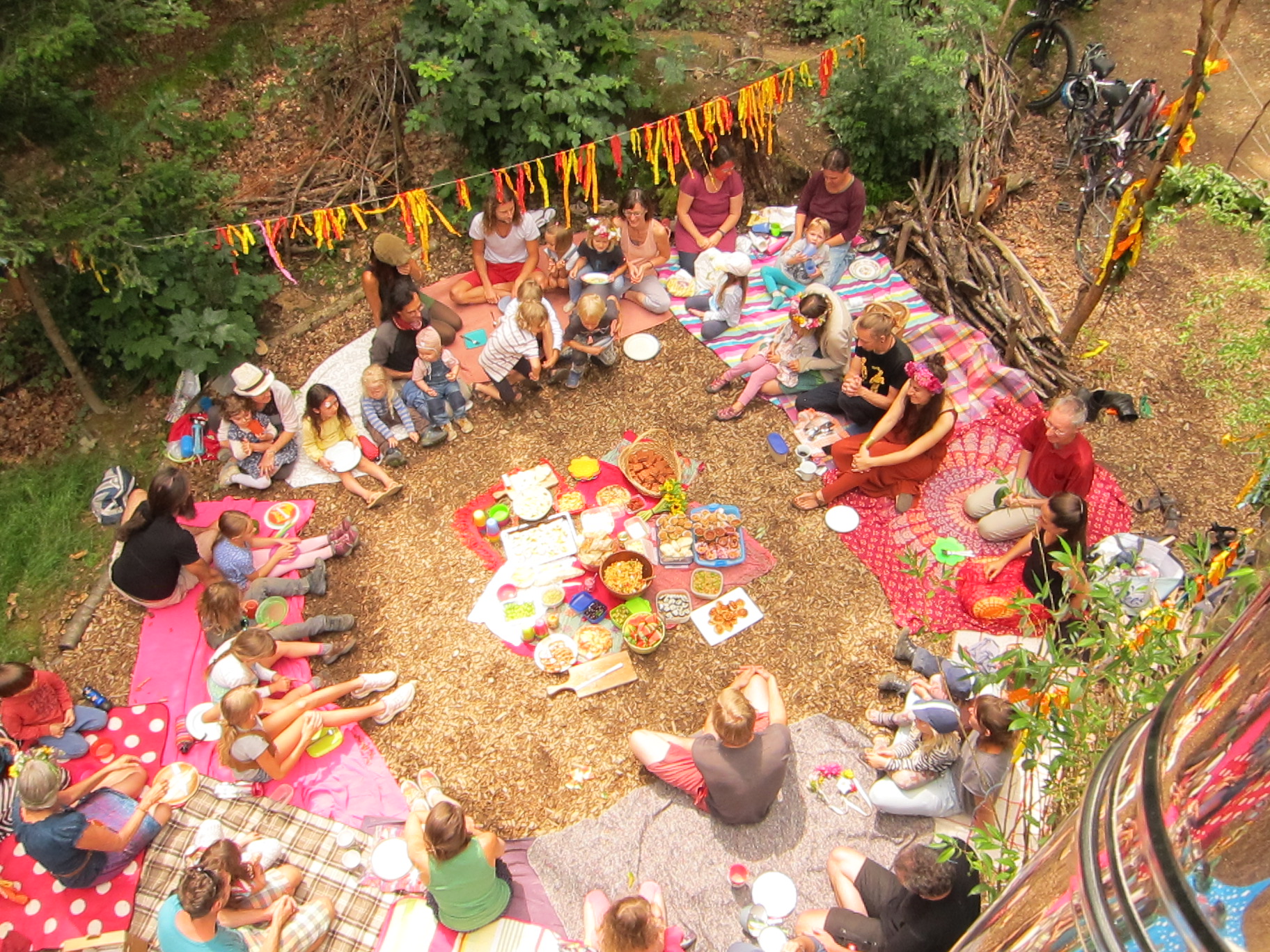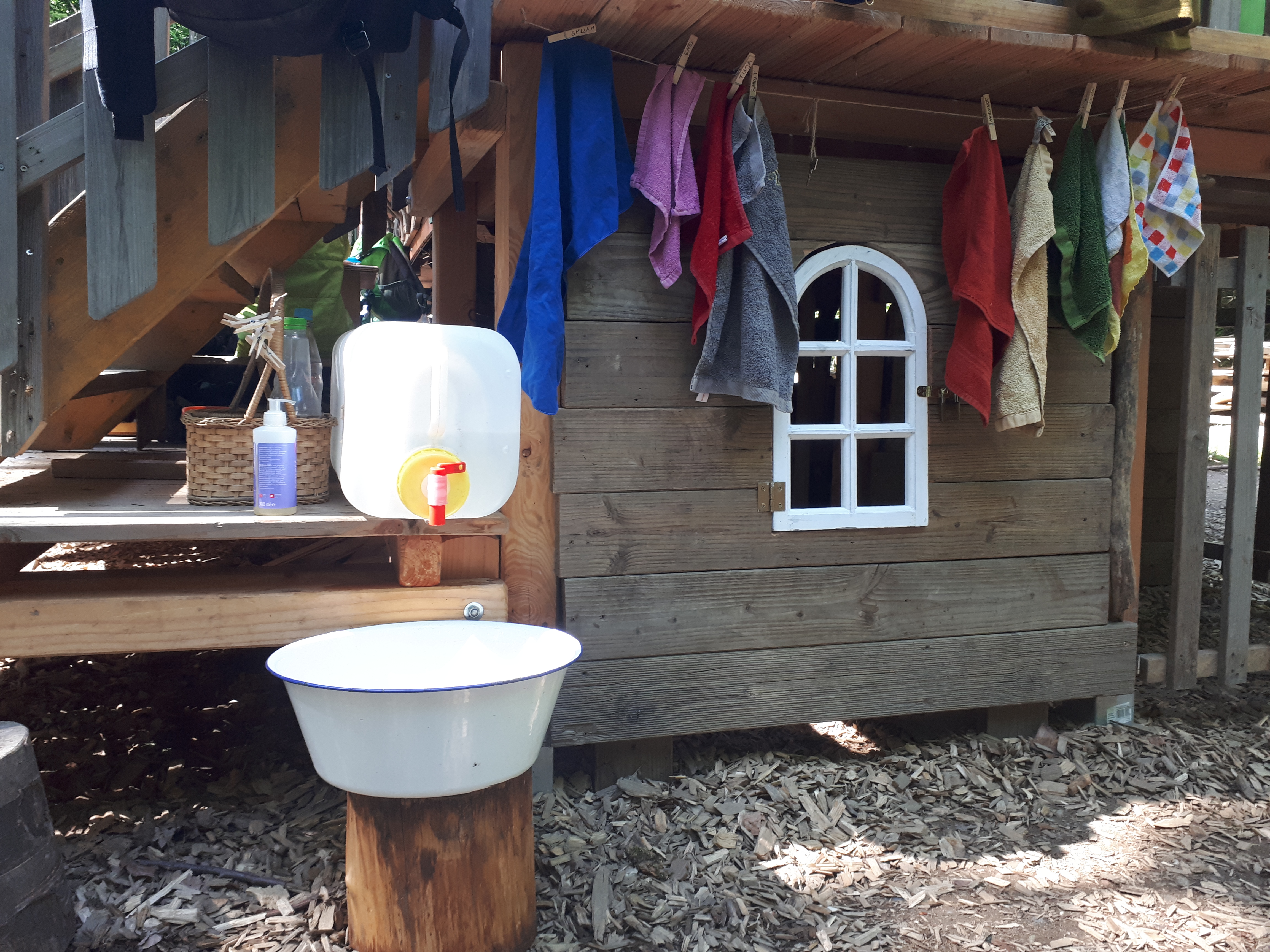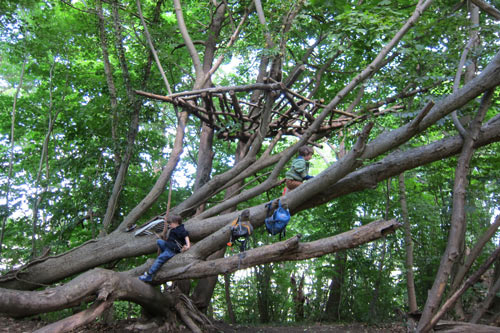 • Freies Spiel und Angebote: Die Kinder gehen auf Entdeckungsreise, spielen Rollenspiele, bauen Hütten oder spielen mit all dem vielfältigen Reichtum der Natur. Teilweise gibt es parallel dazu von den ErzieherInnen ein offenes Angebot wie Sägen, Schnitzen, Basteln zur Jahreszeit und vieles mehr.
